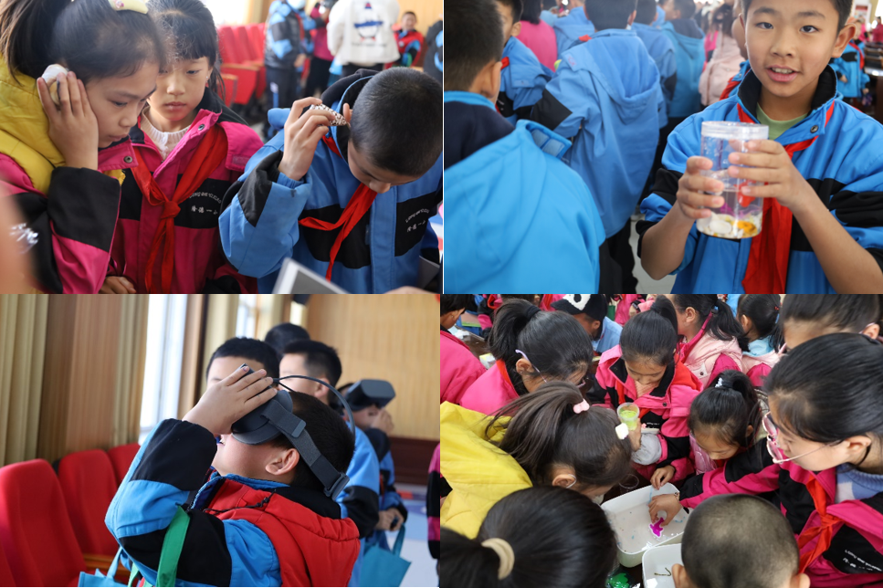 隆重揭牌仪式结束后,中国自然资源报社团委书记、首席记者高悦给同学们作了题为《直到世界的尽头》海洋科普讲座,生动地讲述了自己去“四极”的亲身经历,为大家带来了一顿丰富的“海洋大餐”。讲座一结束,在厦门大学海洋科技博物馆和中国科协“翱翔之翼”大学生志愿服务项目的大力支持下,由厦门大学海洋与地球学院国重第三研究生党支部和学院“山海之约”实践队带来的海洋科技体验活动在会场热闹举行。通过模拟海底火山喷发、弹跳泡泡、海洋生态系统微型瓶制作等各种各样有趣的小实验,帮助孩子们了解海洋、认识海洋;通过底栖生物的采集与多样性展示为孩子们介绍海洋生物的多姿多彩;通过VR眼镜,使孩子们体验遨游深海,探索奇妙海洋世界。这些生动有趣的科普小实验,极大地激发了孩子们对探索海洋奥秘的兴趣。