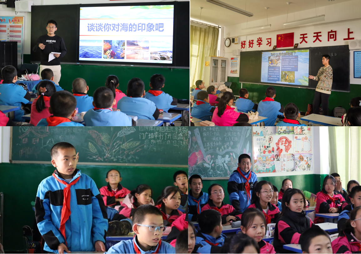 当天下午,厦门大学海洋与地球学院国重第三研究生党支部和学院“山海之约”实践队继续走进隆德一小教室里为孩子们讲述了生动有趣的一堂海洋科普课,让孩子们看到了不一样的世界。孩子们在上课过程中都十分激动、认真,他们积极回答问题、提出问题,展示出对海洋强烈的憧憬和向往,也对海洋充满了好奇和期待,相信一颗颗蓝色种子已经在孩子们的心中悄悄种下。下课后,来自海边的大学生哥哥姐姐们还和隆德一小的孩子们一起许下山海之约——希望孩子们永远对未知充满好奇、对知识充满渴望,将来通过自己的努力走出大山,去感受、去拥抱更加宽广、更美好的世界!