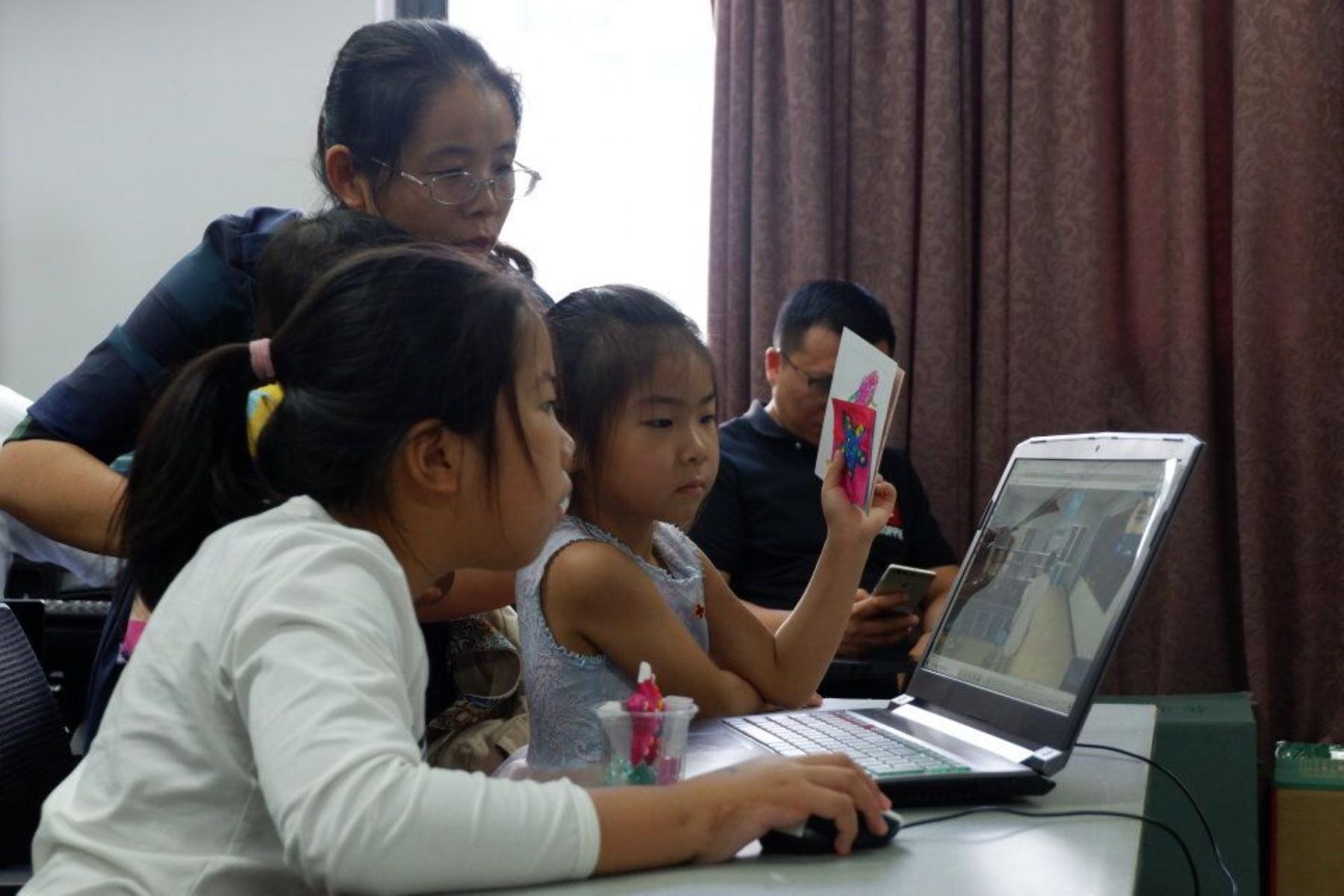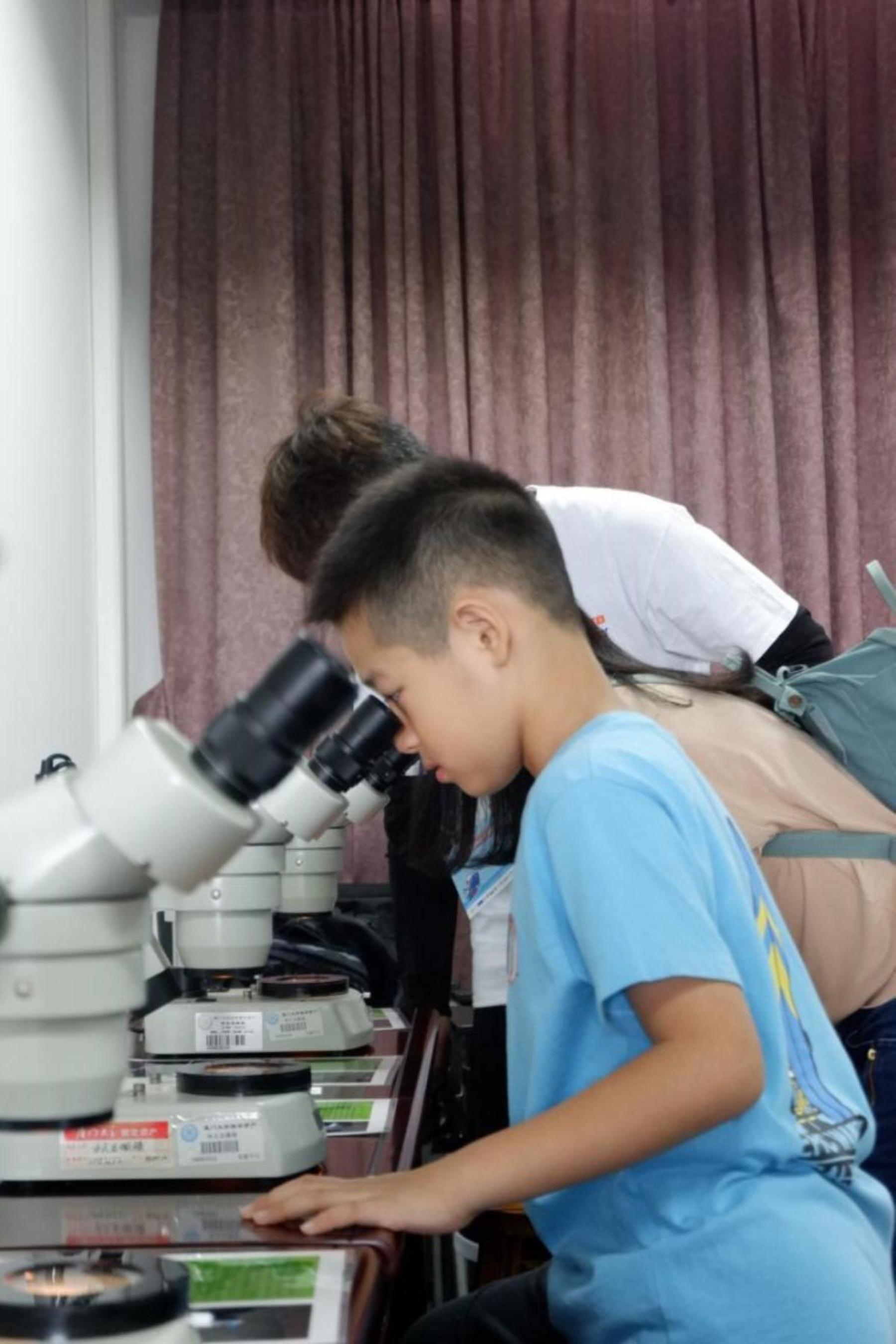 虚拟仿真实验PC端项目体验场地内,志愿者们引导中小学生和家长先利用体视显微镜虚拟实验进行体视镜相关知识的学习,接着体验海洋浮游动物虚拟仿真实验教学项目内容,之后参访者近距离地观察微小的浮游生物样本。这些难得看到的海洋浮游生物让参访者认识到了海洋生物的丰富多样。