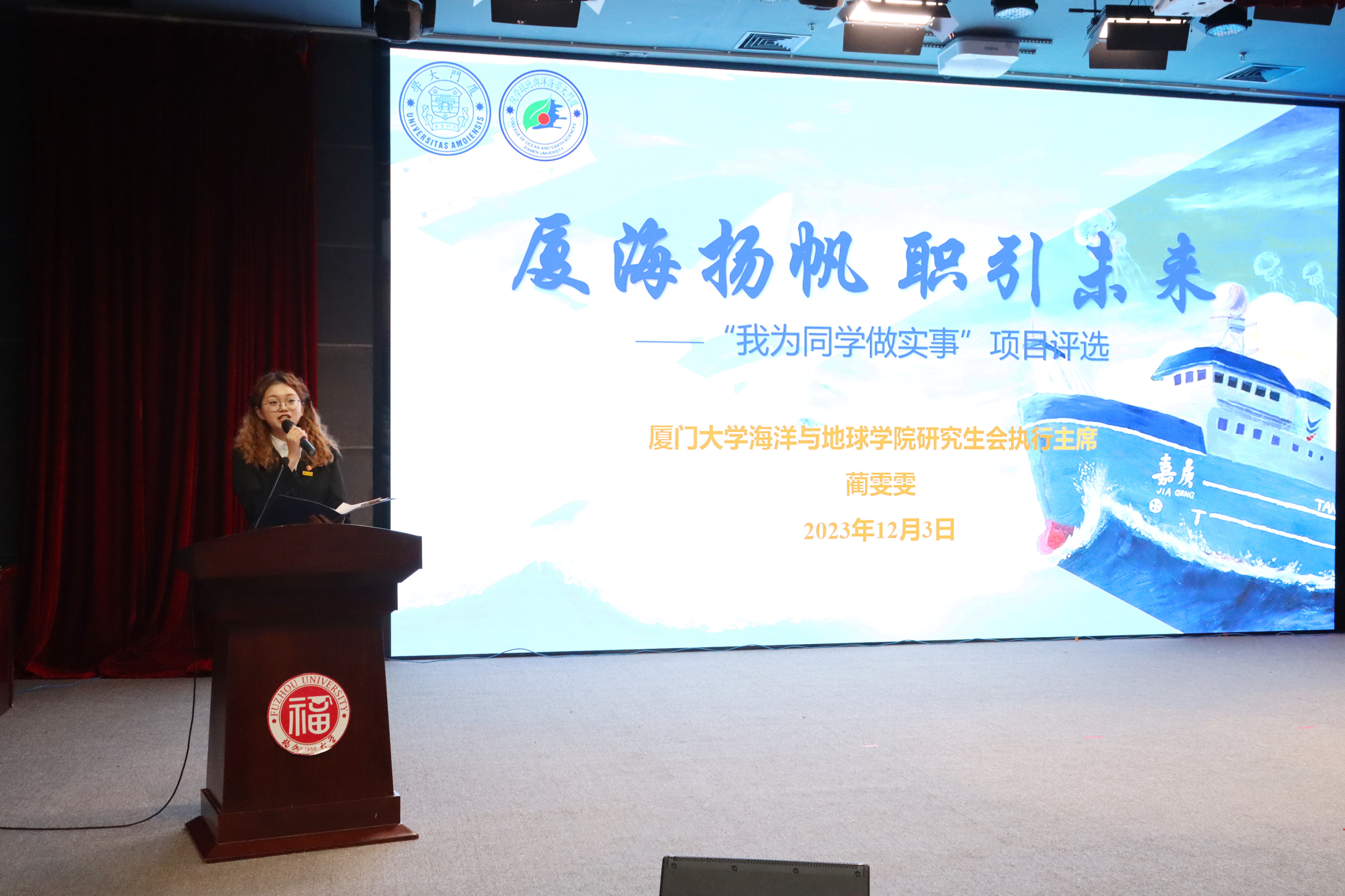 12月3日,2023年福建省学联学生会组织“我为同学做实事”项目交流展示活动在福州大学举行,我院研究生会执行主席蔺雯雯作为代表进行项目汇报展示。经专家初评、线下路演及网络投票等方式,我院研究生会“厦海扬帆,职引未来”项目获得福建省“我为同学做实事”项目交流展示活动“十佳项目”。