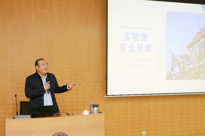 讲座开始之前,李骁麟作动员讲话。他指出,学院的专业技术支撑队伍肩负着维护实验室安全、提高实验教学质量和推动科研创新的重任。学院前期精心筹划,设计了涵盖实验室日常建设、安全管理和团队建设等一系列课程,希望通过本次培训,切实提高技术支撑队伍的业务能力和安全意识,促进交流协作,为学院发展注入强劲动力。