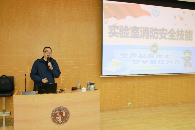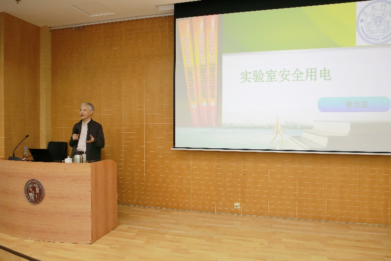 厦门市思明区消防救援大队林乐坦讲师进行了消防安全知识普及与消防技能讲解。他以近年来高校发生的消防安全事故为切入点,深入分析事故发生的原因,详细讲解了实验室日常消防规范、不同火源的扑救方法、消防应急疏散常识和自救逃生技巧等,进一步明确实验室消防安全管理要求,引导全体学员增强消防意识,加强隐患排查,落实各项安全防范措施,完善火灾应急疏散预案,切实防止火灾事故的发生。