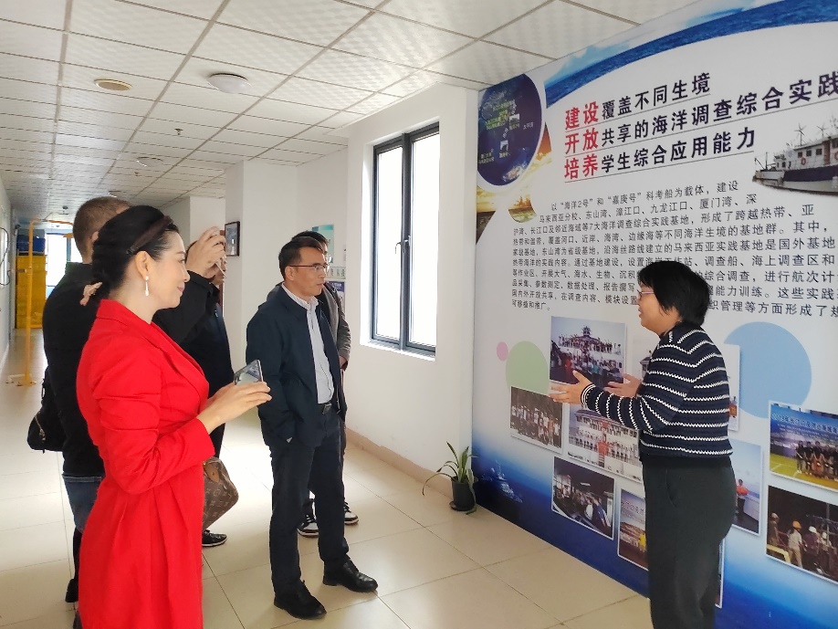调研期间,一行人先后参观了学院海洋学科文化长廊和实验教学中心,系统了解了厦门大学海洋学科的历史文化,“嘉庚”号科考船、国家级野外观测台站及“海丝”系列卫星构成的海陆空一体化海洋多维观测体系与其应用成果,同时进一步了解了学院本科教学实验室的建设、管理与教学模式。