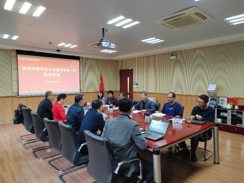 12月6日,华南农业大学海洋学院党委书记伍亚泰一行6人来访我院,就海洋科学专业本科人才培养工作开展调研。海洋与地球学院党委书记吴立武、党委副书记邱荣锋、副院长罗亚威等参加座谈交流。