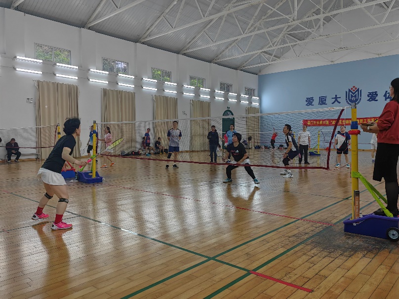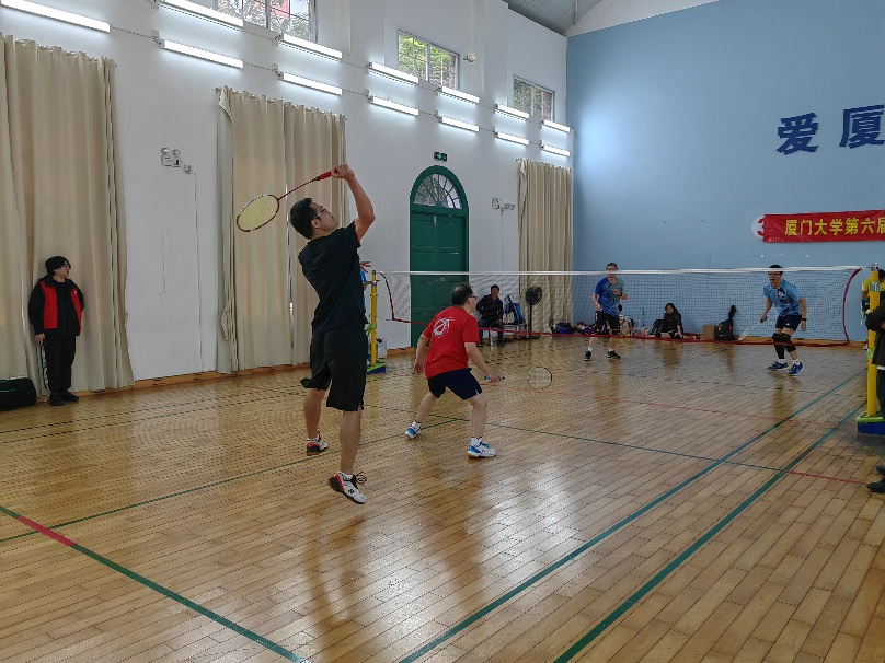 羽毛球双打团体赛分小组赛和淘汰赛两个阶段进行。12月9日,小组赛在翔安校区综合体育馆羽毛球馆举行,我院教职工代表队在比赛中表现亮眼,展现了出色的球技和团队默契,顺利进入八强,成功晋级。12月10日,八强队伍在思明校区风雨球馆进行了激烈的排位战,队员们在场上跳跃拼杀、挥拍自如,全神贯注于瞬息万变的赛场,一次次巧妙吊球、精彩扣杀,博得阵阵喝彩。10日下午的决赛异常激烈,队员们不畏强手、坚韧不拔,有队员几次跌倒亦迅速起身投入激烈的比赛。虽最终与冠军失之交臂,但我院队员展现出的团队合作和拼搏精神赢得了全场观众的尊重和热烈掌声。