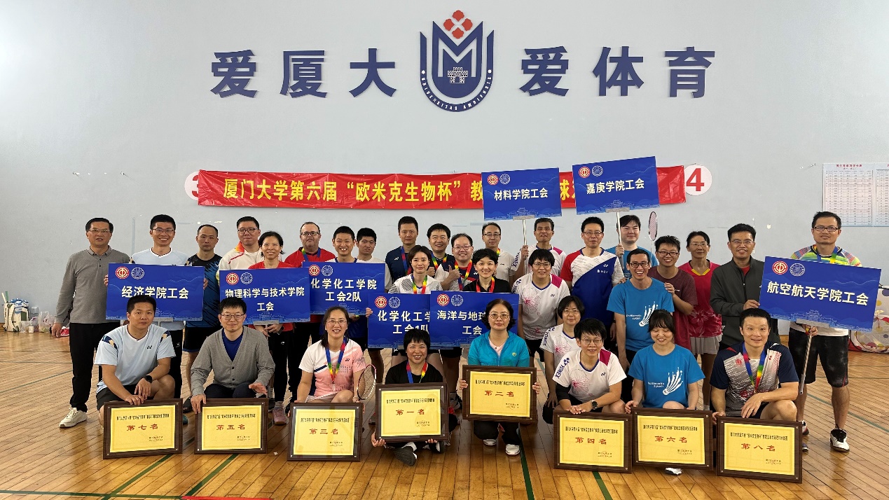 12月9-10日,厦门大学海洋与地球学院教职工代表队在第六届“欧米克生物杯”教职工羽毛球双打团体赛中一路过关斩将、奋勇拼搏,勇夺第二名的佳绩,为学院争得荣誉。院工会主席王桂芝带队,代表队由5名教工组成。