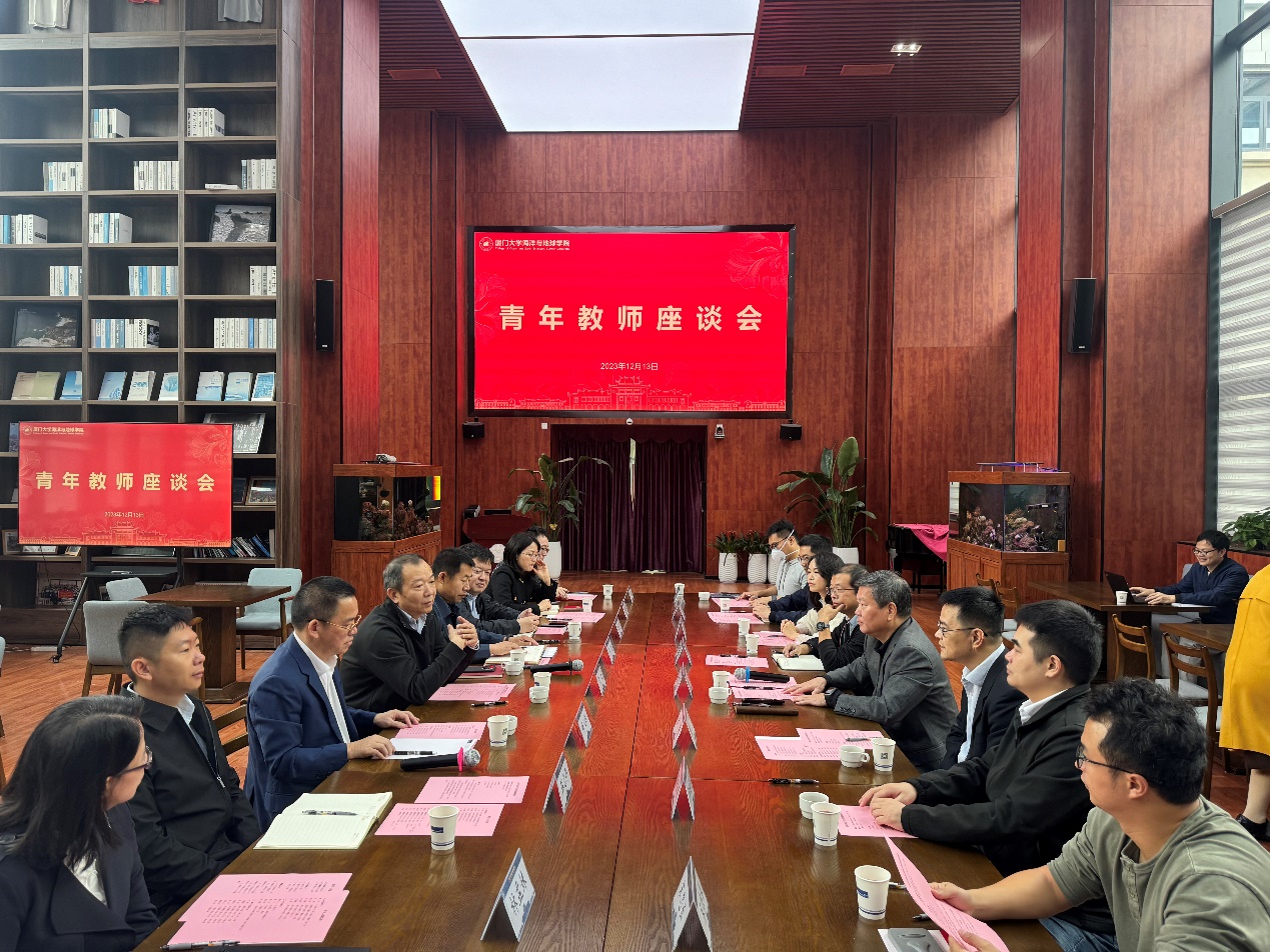 为深入学习贯彻党的二十大精神,全面落实习近平总书记关于做好新时代人才工作的重要指示,进一步了解青年教师个人发展情况和需求,更好地保障和服务青年教师成长,海洋与地球学院与翔安校区管委会联合召开青年教师座谈会。校长助理、翔安校区管理委员会主任陈光、海洋与地球学院党委书记吴立武、翔安校区管理委员会副主任马龙、翔安校区相关职能部门负责人和学院领导、青年教师代表等参加了会议。会议由吴立武主持。