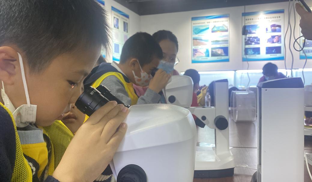 志愿者何阳的水母世界科普讲堂妙趣横生,“安朵仙这类水母呢,是倒立着游泳的”“这个看起来好像盆栽呀”,观众在欢乐的互动中汲取了更多的海洋科普知识,激发了探索海洋的科学兴趣。在水母的科学喂养实验环节,孩子们通过学习自制人工海水、观察丰年虾幼体,并借助喂食管将其投喂水母,不仅掌握了水母喂养的诀窍,更加深了对水母这个神秘海洋生物的了解。杨懿同学自信满满地说道:“我掌握秘籍了,我有信心能够将水母养到30天!”