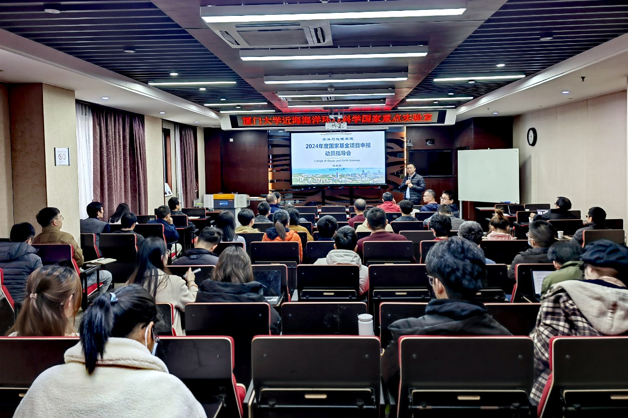 2023年12月21-22日,我院在周隆泉楼A3-206报告厅召开2024年度国家自然科学基金(以下简称“国家基金”)申报动员会。会议由我院副院长刘志宇主持,中国科学院海洋研究所研究员侯一筠应邀出席并作专题报告,我院专任教师、博士后和科研助理等八十余人参加。动员会后,我院在希平楼C2-310会议室组织申请书指导工作。