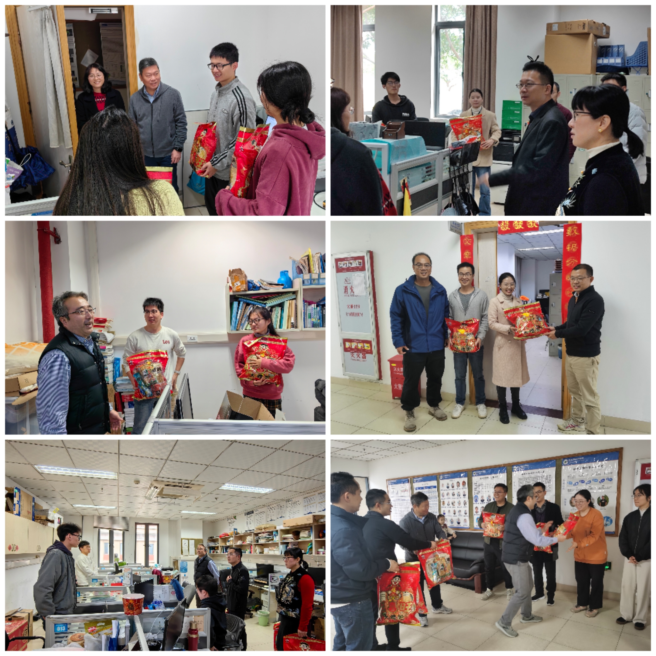 龙腾盛世迎新年,春风万里送福音。2月1-2日,学院党委书记吴立武,院长刘志宇,党委副书记邱荣锋、唐腾凤,副院长李骁麟、罗亚威等一行深入希平楼和周隆泉楼各实验室,走访慰问寒假留校学生,送上新年礼包、节日问候和美好祝福。