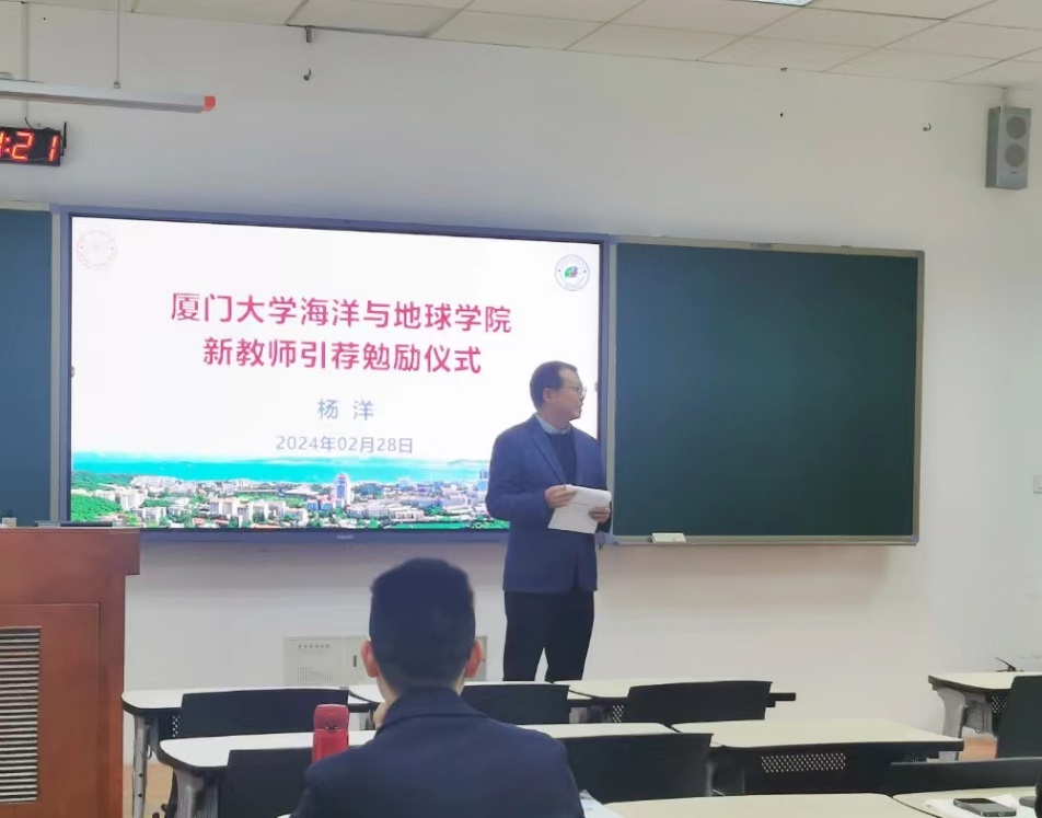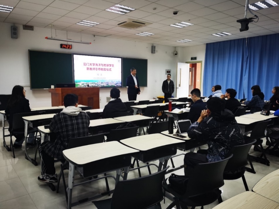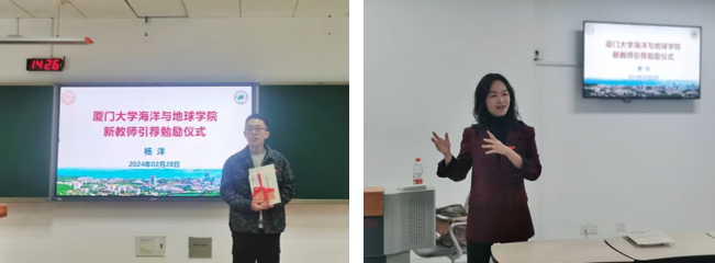 曹玲、杨洋两位老师在发言中对学院的支持与鼓励表达感谢。杨洋表示,本次仪式将更加激励他在未来的工作中不忘立德树人初心,认真备好每一次课,为学院人才培养贡献力量,他同时指出,《数学物理方程及其应用》课程难度较大,勉励同学们在学习过程中不畏困难,勇攀高峰,在“轻松”和“正确”的选择题上,应选择后者。曹玲表示,很荣幸来到最美校园工作,海洋是人类未来的宝藏,希望在《海洋保护与可持续发展》课程中,与同学们一道从人文社科的角度关心海洋、从科学技术的角度认识海洋、从服务国家重大需求角度经略海洋,利用同学们的智慧助力海洋事业发展,保护好人类的家园。