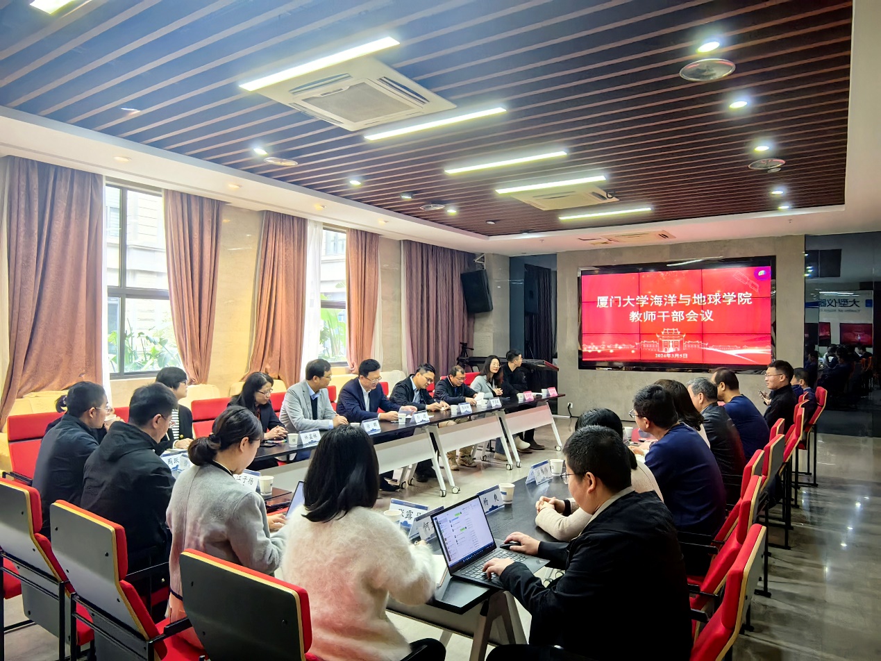 3月5日上午,海洋与地球学院干部任免会议在周隆泉楼一楼多功能厅举行。学院领导班子成员、党委委员、系领导、科级干部、辅导员等参加会议。