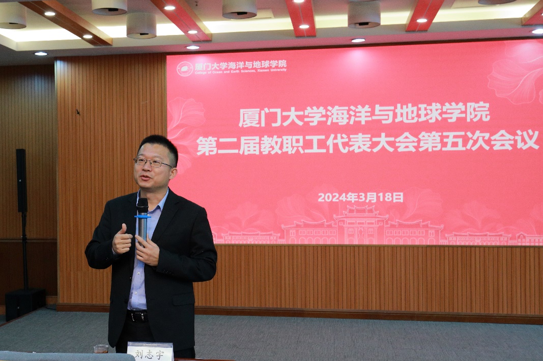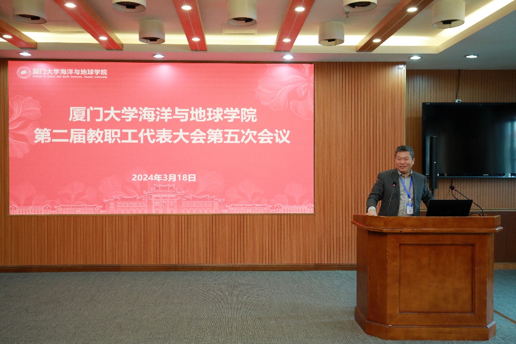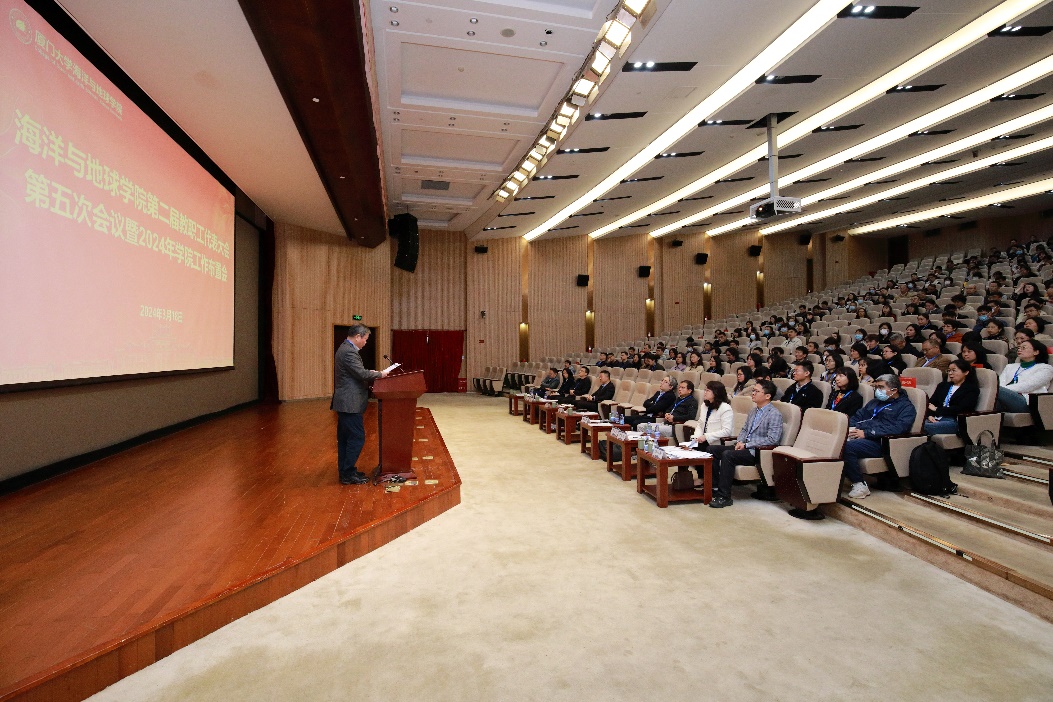 3月18日,海洋与地球学院第二届教职工代表大会第五次会议暨2024年学院工作布置会在翔安校区德旺图书馆举行。学院党政领导、教代表及教职工近300人参会,会议由学院党委书记吴立武主持。