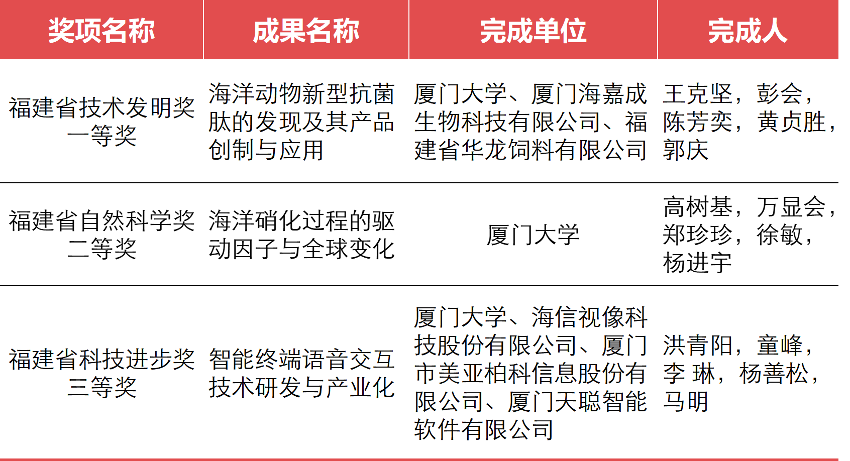 4月6日,福建省人民政府公布了《关于2022年度福建省科学技术奖励的决定》。厦门大学海洋与地球学院王克坚教授团队的科研成果“海洋动物新型抗菌肽的发现及其产品创制与应用”荣获技术发明奖一等奖。据悉,这是2022年度福建省唯一授予的技术发明奖一等奖。