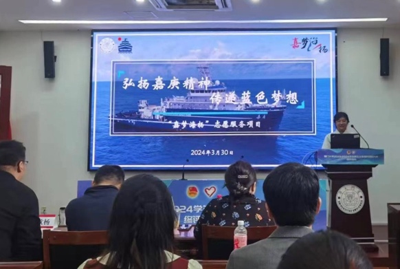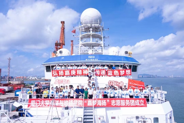 “嘉梦海扬”志愿服务项目创建于2021年,是由厦门大学海洋与地球学院精心打造,由学院团委和科考船运行管理中心共同指导,以弘扬“嘉庚精神”为宗旨、以传递“蓝色梦想”为使命的青年志愿服务项目。项目依托“嘉庚”号科考船暨厦门大学“第五校区”平台,充分发挥科考船的平台优势、项目专业优势、学院人才优势,打造中小学生喜闻乐见的“大海洋+小实验”课程体系,通过“精准滴灌”带领中小学生关心海洋、认识海洋、经略海洋。项目注重采用“海”“陆”“空”三位一体的模式,依托“嘉庚”号科考船进行“海”上科普;深入中小学及内“陆”地区开展线下科普;通过新媒体技术“空”中连线,实现“山海联动”云端课堂,打破地域桎梏,让同学们能“面对面”探索深蓝奥秘。