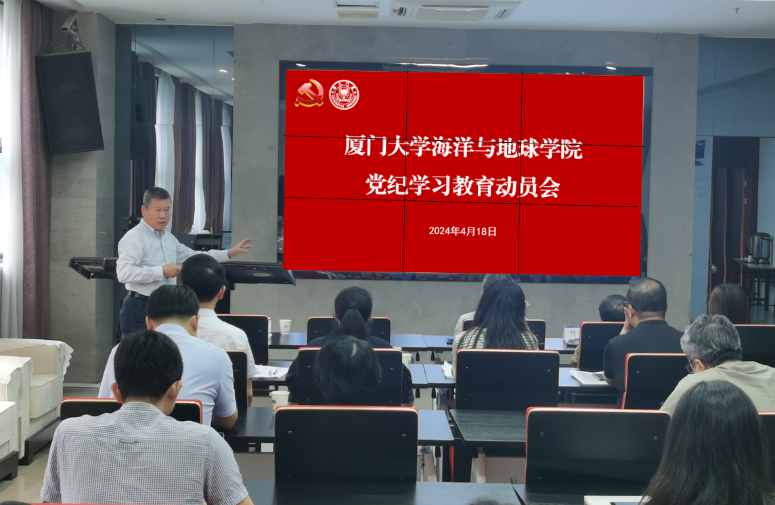 学院党委副书记、纪委书记唐腾凤传达了学校党纪学习教育动员部署会议精神,介绍了《厦门大学海洋与地球学院党纪学习教育实施方案》,并对学院开展党纪学习教育做了具体布置,明确了学院党纪学习教育目标要求、参加对象、时间安排、具体学习教育内容和落实举措。