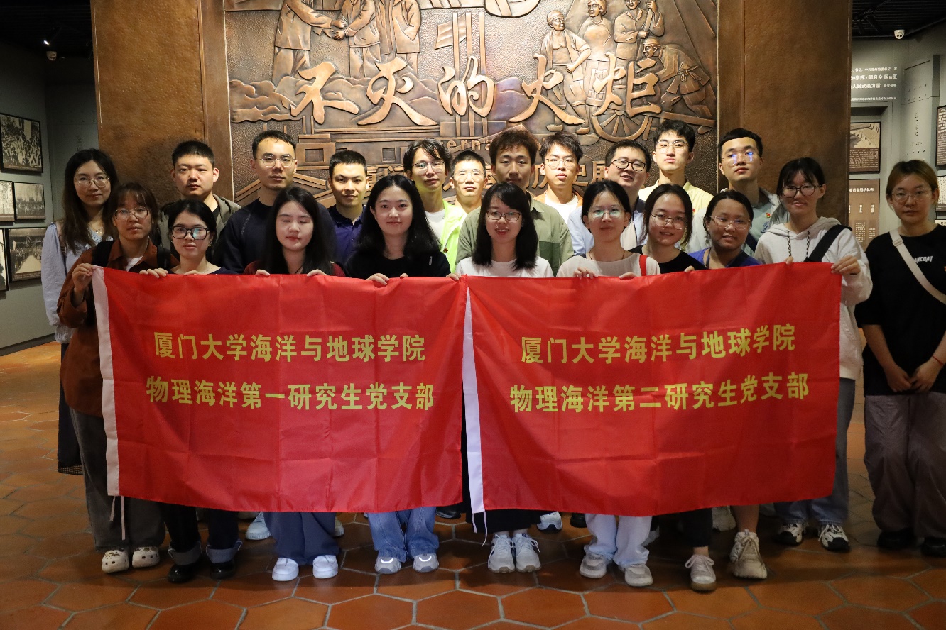 为扎实开展党纪学习教育,2024年5月24日,海洋与地球学院物理海洋第一研究生党支部和第二研究生党支部赴厦门市爱国主义教育基地开展主题党日联学共建活动,本次活动由学院团委副书记张露月带队。