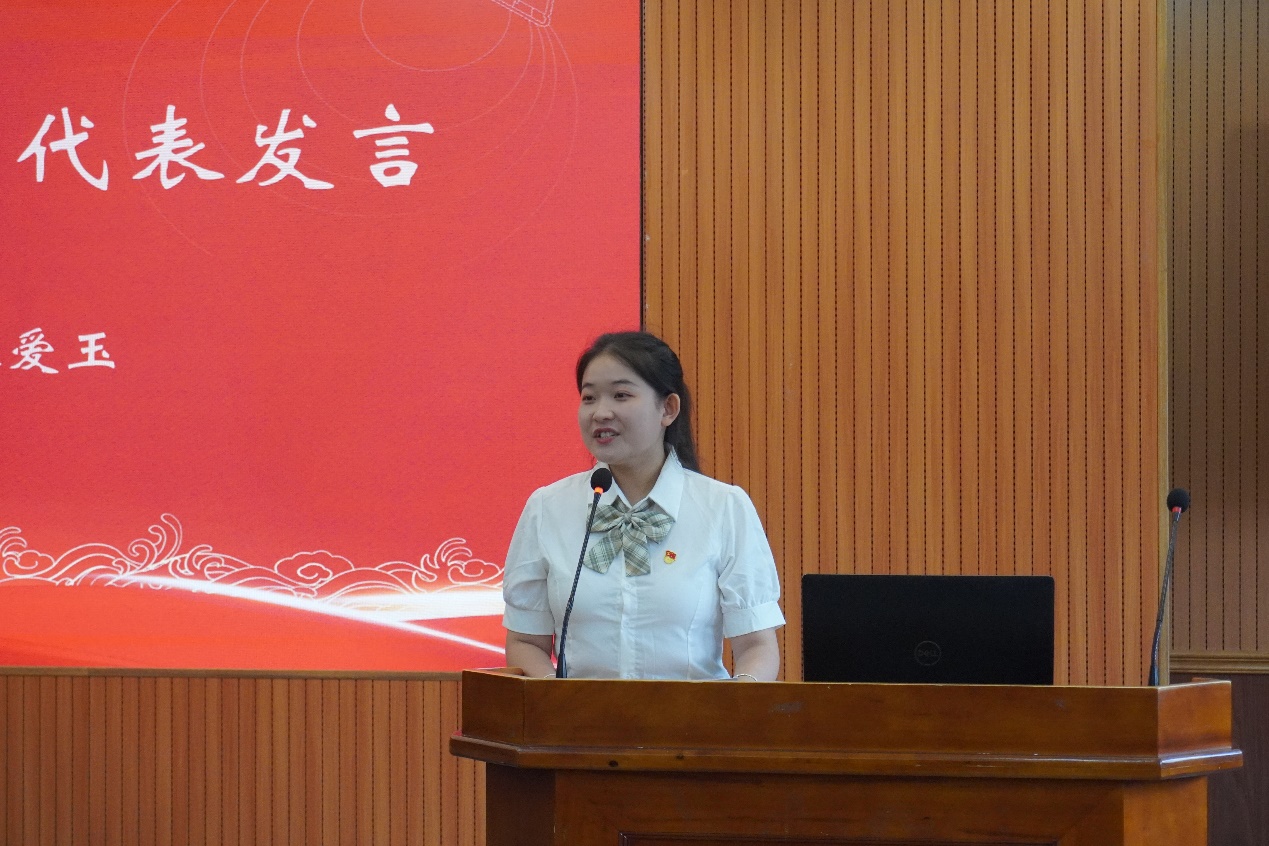 毕业生党员代表、2021级硕士生张爱玉回顾了绚烂而又充实的厦园时光,三年来,她不仅扎根专业学习,还在实习实践中绽放青春光彩。不论是搭乘“嘉庚”号科考船参加国家基金委共享航次,还是在东山海洋观测与实验站实现多学科、跨界面团队协作,又或是参与厦门大学首批学生社区挂职计划,她都在用脚步丈量初心、以奋斗磨砺品格。她强调“我们这一代青年在各个领域都大有可为”。毕业后,她将扎根基层,投身到乡村振兴的火热实践中。