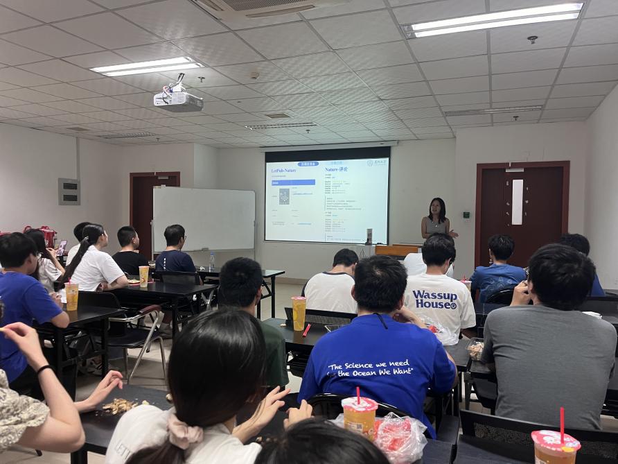 会议在欢快的氛围中进行,受到邀请的毕业生依次上台分享了自己就业、考公、申博、科研等方面的经验。李玉蕊首先分享了她硕士三年的科研经历。她认为,科研工作除了沉下心来做实验,也应该及时凝练分析,高质量地总结自己的科研成果,并将其发表在学术期刊上。她表示,在三年硕士研究生学术生涯中,得到的最为宝贵的经验就是在完成实验的基础上完成了科技论文的写作、修改、润色与投稿。
