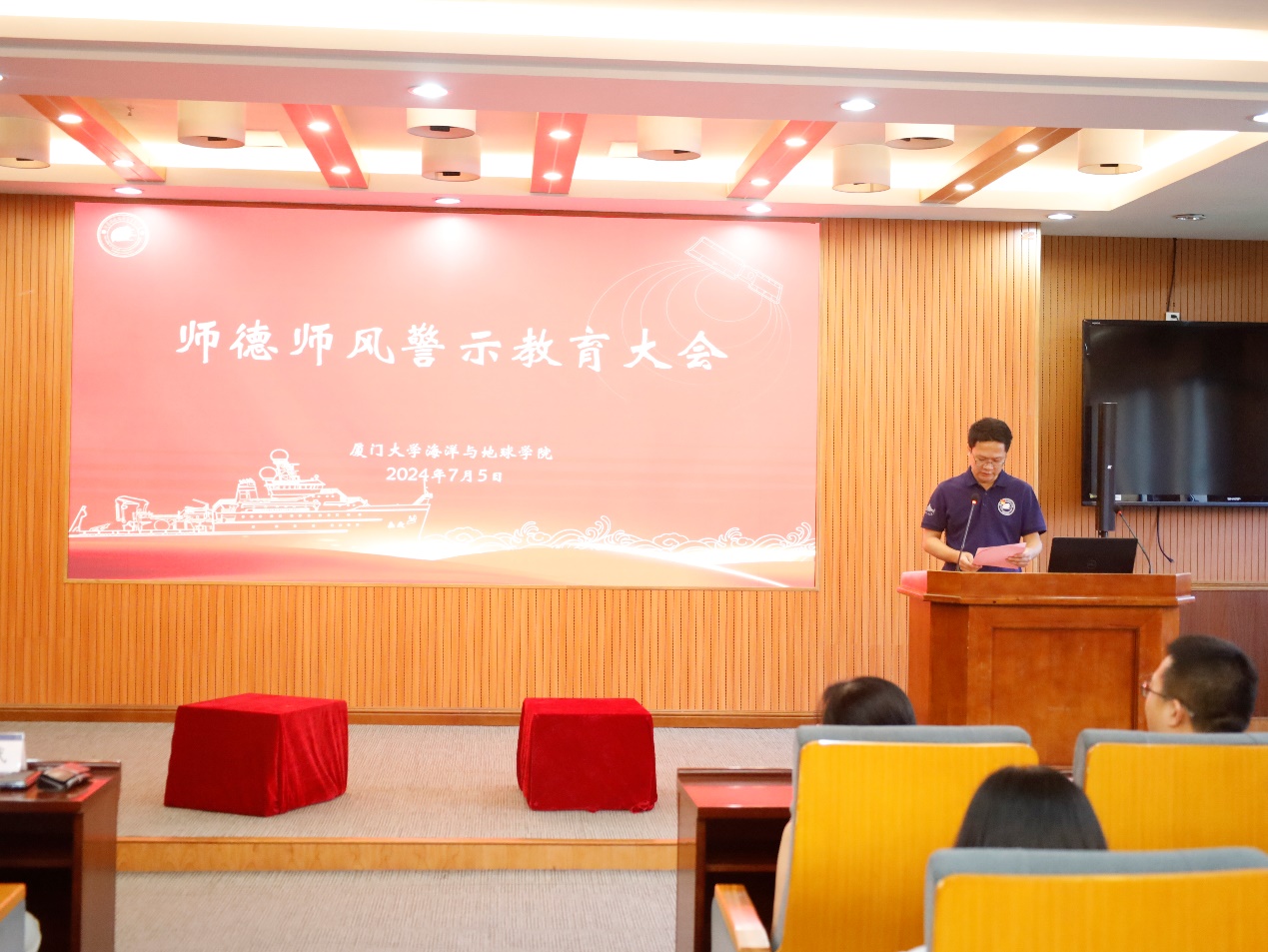 以案为鉴证师风,修身律己强师德。此次警示教育大会,对于学院每一位教师来说,既是一次思想教育,也是一次精神洗礼。近年来,我院通过持续开展“院长谈准则”“书记亮警示”活动,举办“师德师风大讲堂”等,全面加强师德师风建设,形成尊师重教、教书育人的良好氛围。学院将继续从宣传教育、实践养成、榜样引领等方面扎实推进师德师风建设,营造教书育人、风清气正的良好环境,激励广大教师自觉践行师德规范,努力成为学生为学、为事、为人的大先生,为建设世界一流海洋学科作出新贡献。