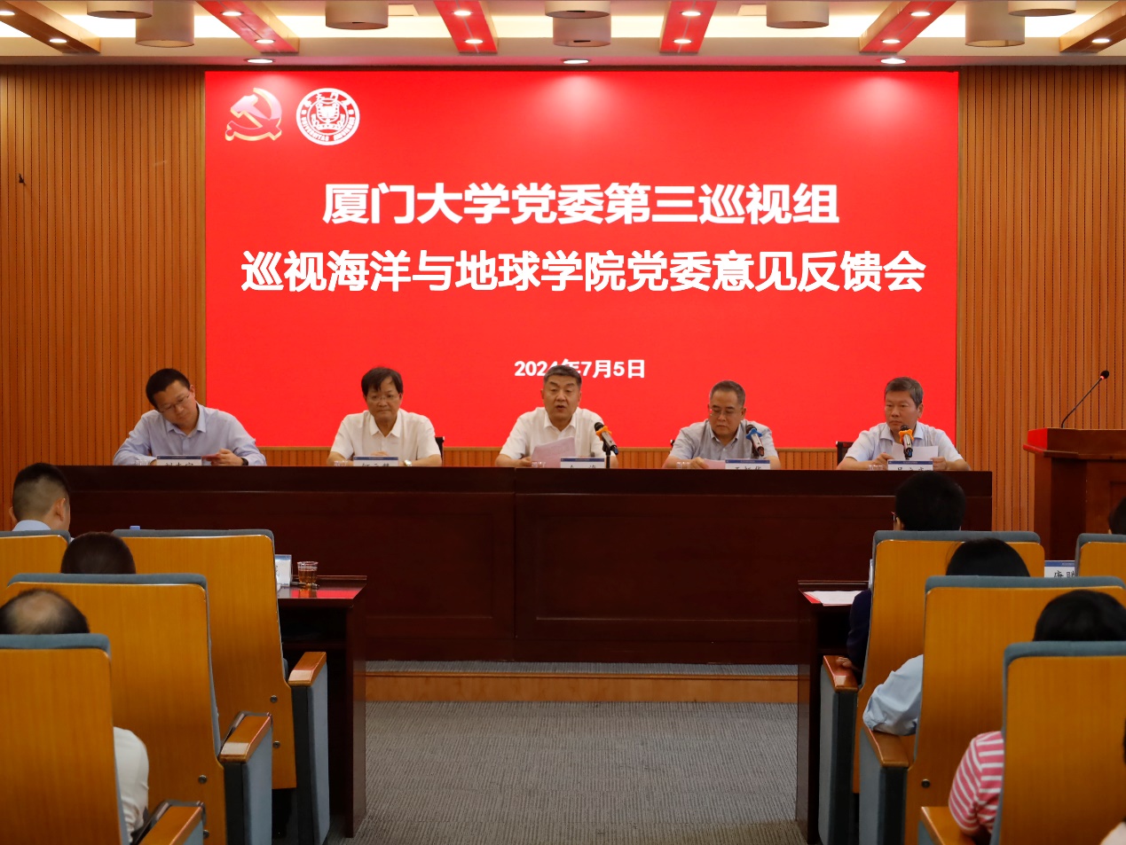 7月5日下午,校党委第三巡视组巡视海洋与地球学院党委意见反馈会在希平楼C2-403召开。校党委副书记、纪委书记、国家监委驻厦门大学监察专员全海,校党委第三巡视组组长王炳华、副组长何元赞,校党委巡视办主任洪真裁,校纪检监察机构第二纪检监察室纪检监察员黄立恺,校党的建设工作办公室秘书林志伟,校党委第三巡视组全体成员出席会议。会议由学院党委书记吴立武主持。海洋与地球学院、厦门大学碳中和创新研究中心全体在职教工参加。