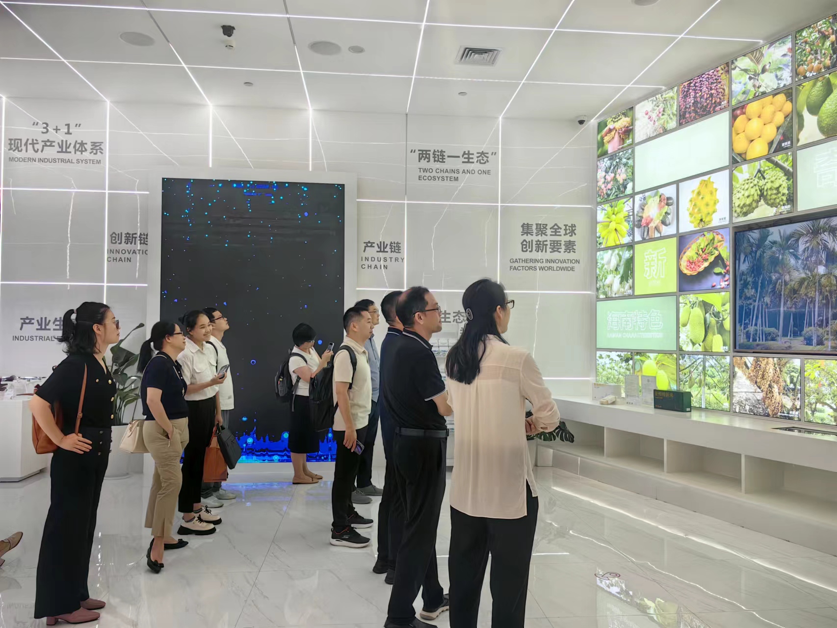 在崖州湾科技城,调研团一行参观了科技城产业促进中心,详细了解科技城发展规划、产业布局、平台建设、研学创新等方面情况,并与科技城管理局党委委员、副局长李丕学等座谈交流。座谈会上,科技城教育合作促进部、科技研发部、人才发展部相关负责人先后介绍了科技城人才培养、科研平台建设运行、科技成果转化、人才引入等相关情况和政策。