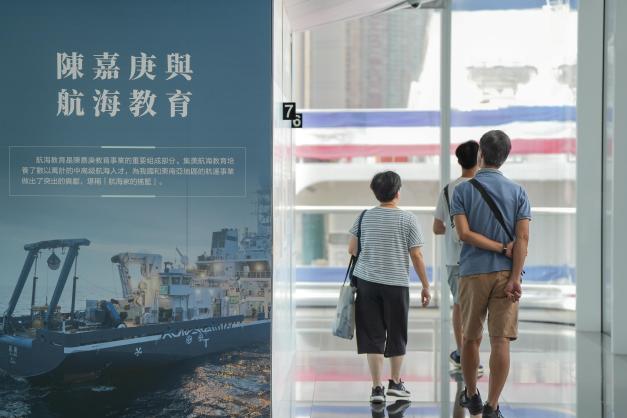 海运大厦旅客候船大堂同步设有“纪念陈嘉庚先生诞辰150周年专题展览”。实践队员向参访人员介绍了嘉庚先生倾资兴学、纾难救国、发展航海教育等生平事迹,以及“嘉庚”号的建造、运行等情况。通过对展板的学习、讲解,实践队员将“嘉庚精神”内化于心,外化于行,在感恩缅怀陈嘉庚先生深厚的教育情怀的同时,也推动了海洋知识普及,促进海洋科学的发展。