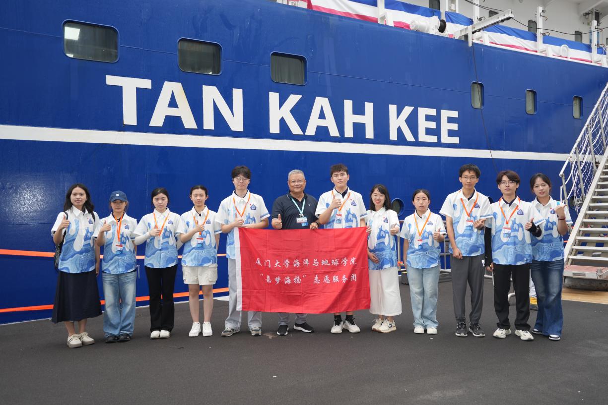 在“嘉庚”号公众开放日活动这堂行走的思政课中,厦门大学海洋地球学院“嘉梦海扬”实践队与厦门大学“海丝学堂”第二航段学生志愿者参与其中,一同在开放日期间引导参访公众参观“嘉庚”号的驾驶室、实验室、工作甲板、科学家住舱等工作和生活区域,并作为讲解员将海洋专业知识以通俗易懂、生动有趣的方式传递给大众,耐心回答参访人员提出的问题。开放日期间,近2000位参访人员走进“嘉庚”号,他们纷纷表示参观学习后加深了对海洋知识的了解,感受到海洋科学的无限魅力,今后将更加关注海洋科学与文化。