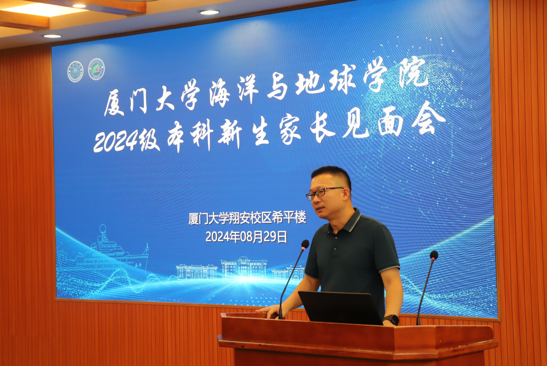为搭建家校沟通的桥梁,促进家校协同育人,营造良好的教育环境,8月29日上午,海洋与地球学院在希平楼C2-403举行2024级本科新生家长见面会。厦门大学海洋与地球学院院长刘志宇,党委副书记陈向柳,海洋化学与地球化学系副主任汪冰冰,学院拔尖计划、强基计划负责人简星,学院团委书记江子扬,本科教学秘书侯淑娜以及2024级本科新生家长出席了本次会议。会议由本科新生辅导员张露月主持。