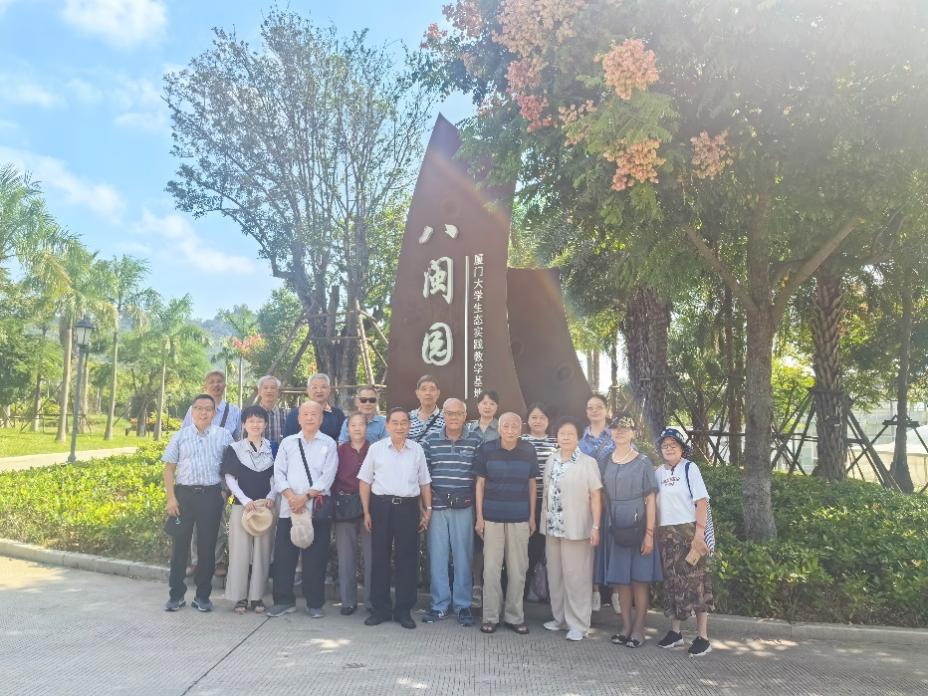 八闽园坐落于翔安校区北部,占地约160亩,不仅汇聚了富有福建省内各地市地域文化和产业特色的资源,更是厦门大学生态科学园的重要组成部分,兼具科研与科普双重功能。漫步于园区内,老师们被眼前的美景深深吸引,一边参观游览,一边回忆往昔。久别重逢的老同事们,一路上欢声笑语,畅聊曾经的峥嵘岁月,仿佛回到了在海洋奋斗的激情时代。满足与幸福的笑容始终洋溢在老师们的脸上,言谈中不断流露出对学校和学院的深厚感情,这份关爱与牵挂如同秋天的果实,醇厚而美好。