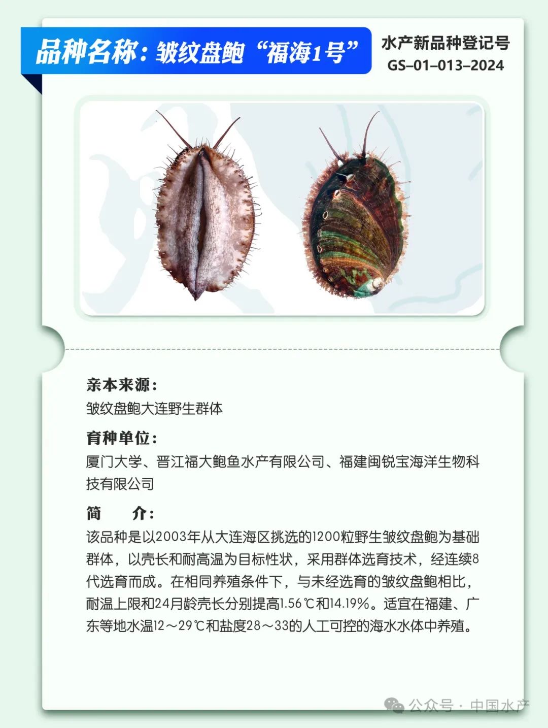 皱纹盘鲍“福海1号”是柯才焕教授团队继杂色鲍“东优1号”、西盘鲍、绿盘鲍后,获得的第四个国审鲍新品种,该品种具有生长快、耐高温的优势,深受南方全程养殖业者的欢迎,具有特定的消费市场,应用潜力大,有望对我国鲍养殖产业提质增效和高质量发展起到积极的推动作用。
