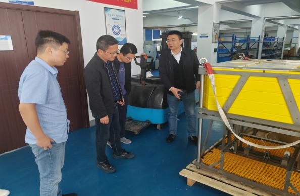 在杭州海询科技有限公司,调研团一行首先参观了公司装备制造厂区,全面了解公司主要产品和生产环境。热火朝天的生产现场不仅体现了公司业务正在快速爬升,也是国家海洋强国战略推进的重要印证。座谈会上,公司副总经理汪鹏对学院来访表示热烈欢迎并详细介绍了公司主要发展状况。余小龙代表学院向公司介绍学院情况。刘艳杰对公司业务蒸蒸日上表示祝贺,希望双方在实习就业、人才培养和产教融合推进合作。