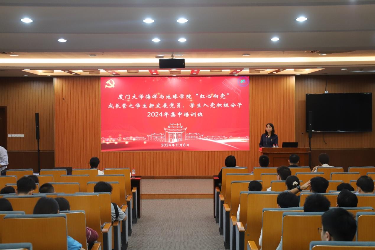 为深入学习贯彻习近平新时代中国特色社会主义思想和党的二十届三中全会精神,进一步提升新发展党员和入党积极分子的思想政治素养,切实加强党员队伍建设,11月6日晚上,我院“红心向党”成长营之学生新发展党员、学生入党积极分子2024年集中培训班开班仪式暨首场理论报告在希平楼C2-403报告厅举行。学院党委副书记唐腾凤,公共事务学院林亚清教授,学院党务秘书、组织员、团委书记、副书记、辅导员,以及学院200余名新发展党员、入党积极分子参加。