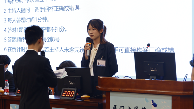 11月24晚,由厦门大学教务处、海洋与地球学院联合主办的厦门大学第十五届海洋知识竞赛决赛在希平楼C2-403举办。海洋与地球学院地质海洋学系副主任简星副教授,应用海洋物理与工程系副主任余小龙副教授,第十四届全国海洋知识竞赛大学生组三等奖获得者裴宇琪、谭盈、蒋越同学担任评委。决赛由马子鸣、刘禹希同学担任主持人。