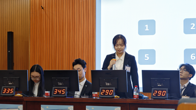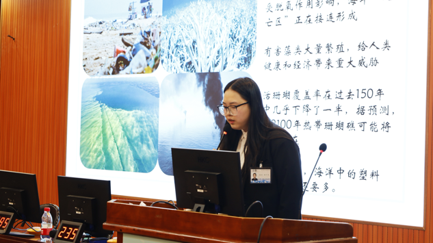 在前五轮激烈角逐后,陈伯漳、徐子灵、江洲同学脱颖而出,晋级最后的“巅峰对决”——主题演讲环节。以“扬帆‘海洋十年’,驶向希望之海”为主题,选手们从容自信、慷慨陈词,娓娓道来中,既有对全球海洋保护现状的深刻剖析,也有对未来蓝色梦想的美好愿景。他们用深邃的思考与真挚的情感打动了现场观众,将“向海图强”的精神传递得淋漓尽致,激荡起现场每一颗心向海洋的热忱之心。