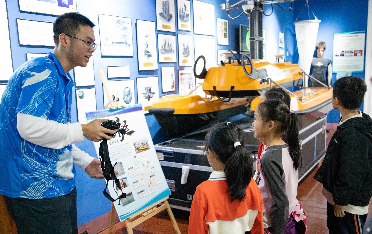 11月23日,厦门市翔城小学204向阳苗苗班雏鹰小分队奔赴厦门大学海洋科技博物馆,在厦门大学“翱翔之翼”大学生科技志愿服务队的带领下,一头扎进神秘的蓝色世界,开启海洋科技奇幻之旅。