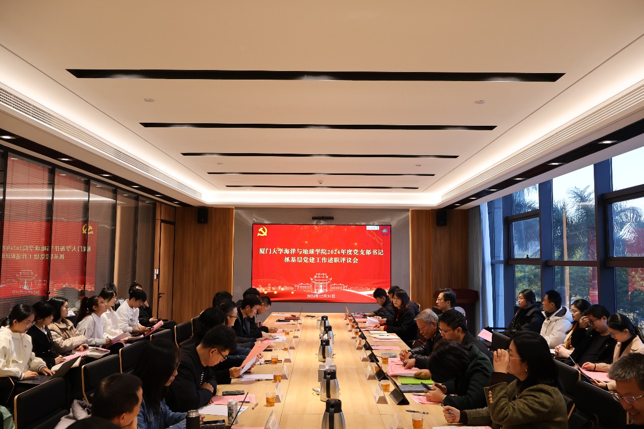 为贯彻落实第二十八次全国高校党的建设工作会议精神,推进全面从严治党向基层延伸,提升基层党建工作质量,12月31日,海洋与地球学院2024年度党支部书记抓基层党建工作述职评议会在希平楼C2-203召开。厦门大学基层党建工作联络员黄田、学生工作部(处)副部(处)长高斌莅临指导。学院党委书记刘艳杰、副书记陈向柳、学院党委委员、党支部书记、党务秘书和辅导员等参加会议。会议由学院党委副书记唐腾凤主持。