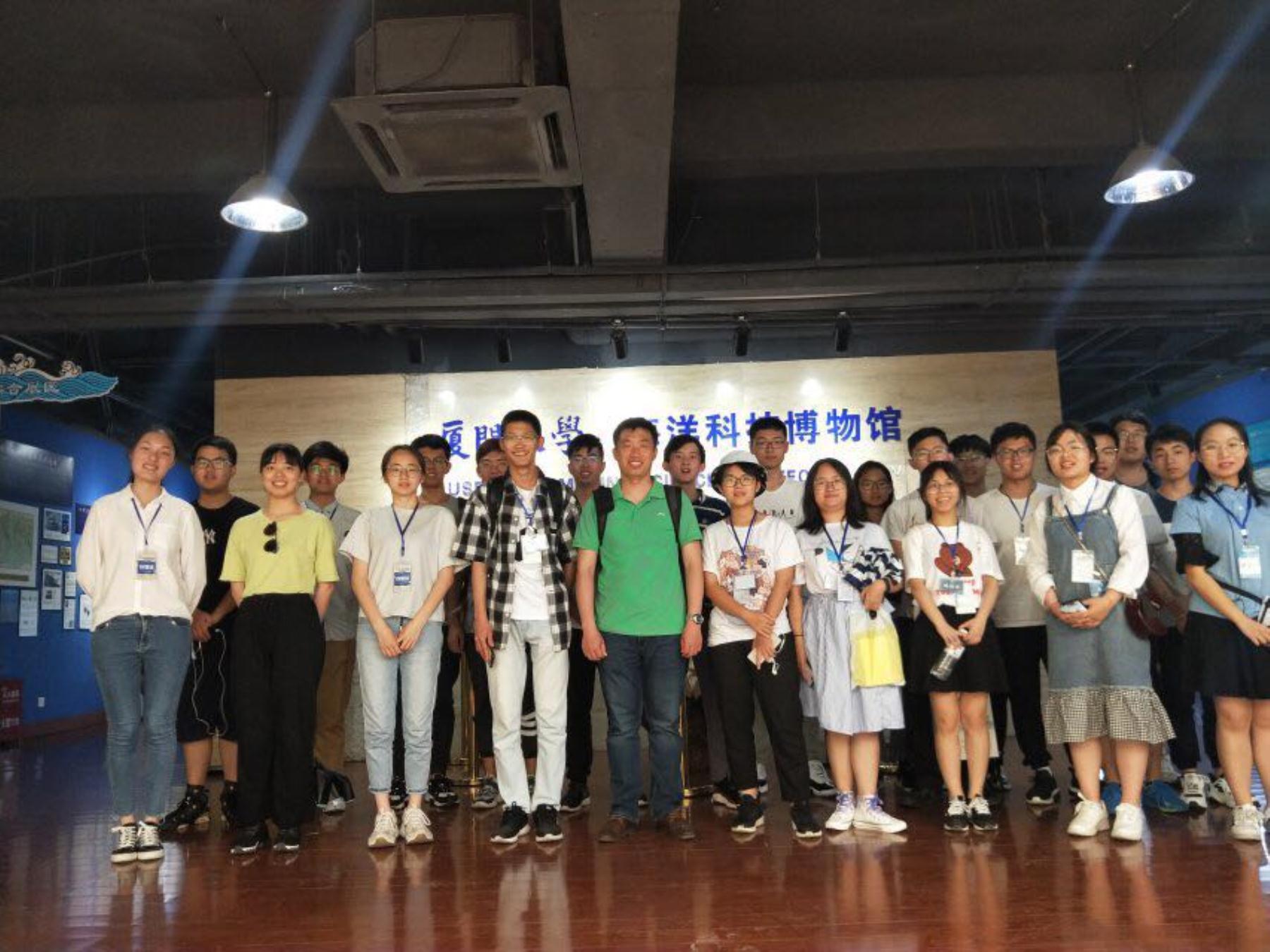 讲解从博物馆门口与众不同、内涵丰富的砗磲开始,95cm长的砗磲象征厦门大学走过的95年历程,是对过往成就的见证,也是对美好未来的展望,引来参观者的频频感叹。紧接着,参赛同学们依次参观了综合展厅、海洋地质展区、海洋生物展区、水声通讯展区以及观海弄潮展区。在参观的最后,参赛同学们观看了“嘉庚”号海底考察录像。在生动的讲解和视频介绍中,同学们近距离接近海洋,了解海洋以及对海洋科学探索的发展历程,更深刻地了解了厦大海洋学科的特色和深厚底蕴。