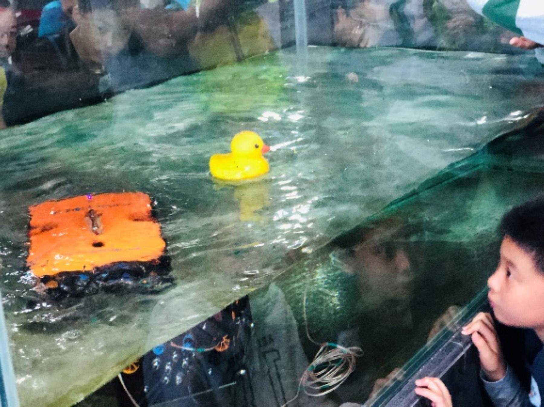 本次科普活动由厦门大学海洋科技博物馆与新浪厦门联手推出,旨在推广水下机器人的研究成果,提高海洋科学知识民众普及度,进一步发挥厦门大学海洋科技博物馆的科普、育人作用,共同促进海洋科普事业的发展。活动主题鲜明,内容丰富,形式新颖。除了常规的五大展区讲解外,还邀请海洋与地球学院童峰教授为同学们带来一场与海底机器人相关的专题讲座,童老师生动形象、深入浅出地为大家介绍了与海洋相关的科学常识、海洋未来的发展方向、水底机器人的分类以及水下机器人的组成部分等若干内容,同学们一边认真聆听童老师的介绍,一边积极踊跃发言提问,短短20分钟的讲座在师生默契有序的配合下达到了效果的最大化。不少同学在听完讲座后燃起了对水下机器人的兴趣,有的同学还萌生了想要发明自己心目中的机器人的小小愿望。紧接着,进入了“实战”观摩水下机器人的环节,博物馆志愿者为大家真实再现水下机器人的工作原理和工作方式,详细介绍了水下机器人各组成部分的功能,同学们就自己感兴趣的部分向志愿者提问,志愿者都给予详细地解释,随后,同学们纷纷上手,体验操纵水下机器人,近距离感受水下机器人的魅力。