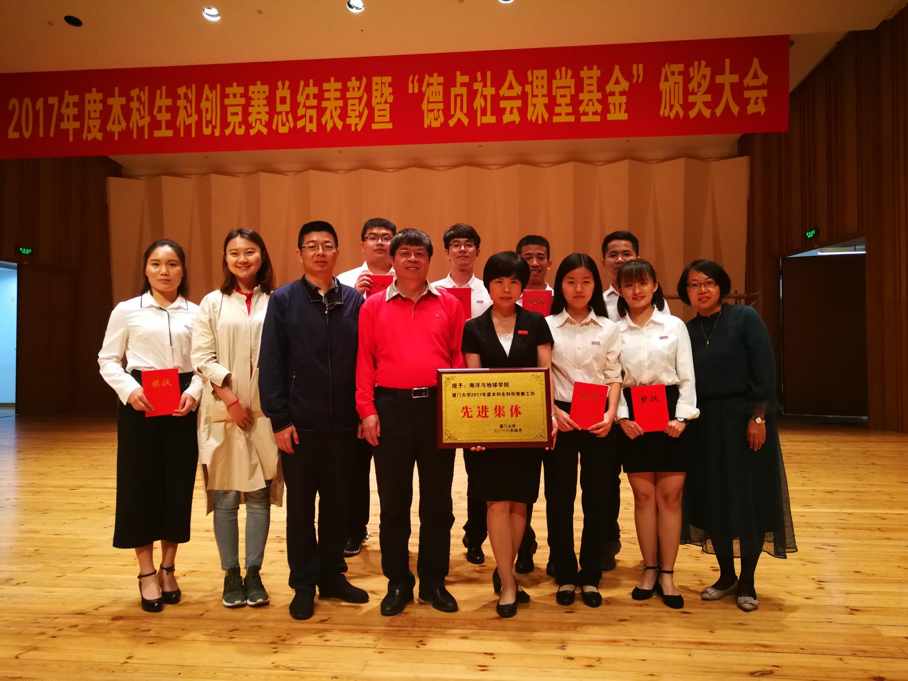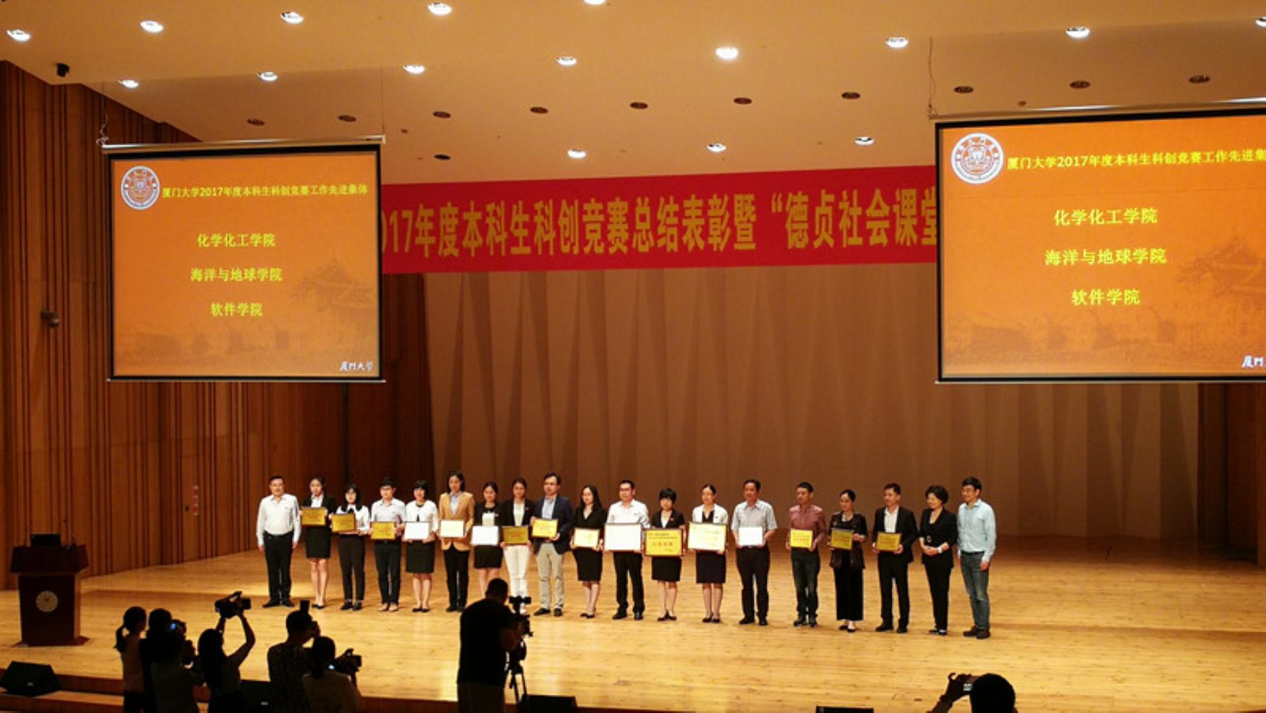 在此次表彰大会中,海洋于地球学院被评为“厦门大学2017年度本科生科创竞赛工作先进集体”(全校仅3个学院),且有多名师生受到表彰,张宇教授获评“指导教师突出贡献奖”(全校仅5人)。