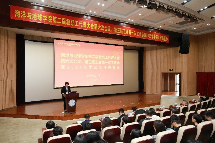3 月 27 日,海洋与地球学院第二届教职工代表大会第六次会议、第三届工会第一次工代会暨2025年学院工作布置会在翔安校区德旺图书馆召开。学院党政领导、全体教职工齐聚一堂,共商学院发展大计。会议由学院党委书记刘艳杰主持。