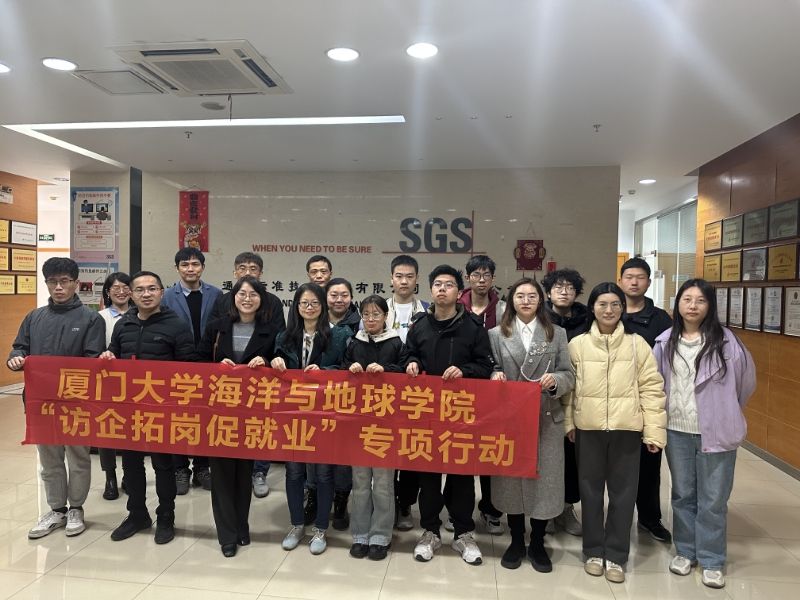 为进一步深化校企合作,拓宽学生就业渠道,推动产教融合协同育人,2月24日上午,海洋与地球学院党委副书记唐腾凤、海洋化学与地球化学系系主任王为磊、系副主任张润、团委副书记徐惠聪以及本硕博学生代表一行15人前往通标标准技术服务有限公司(SGS)厦门分公司(以下简称“SGS通标厦门分公司”)开展“访企拓岗”专项活动。