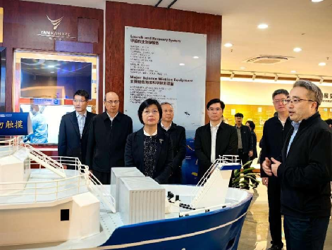 会前,黄玲一行参观了海洋学科文化长廊,实地了解海洋学科悠久的发展历史、深厚的学术积淀、先进的海陆空天观测装备和最新的原创性成果。