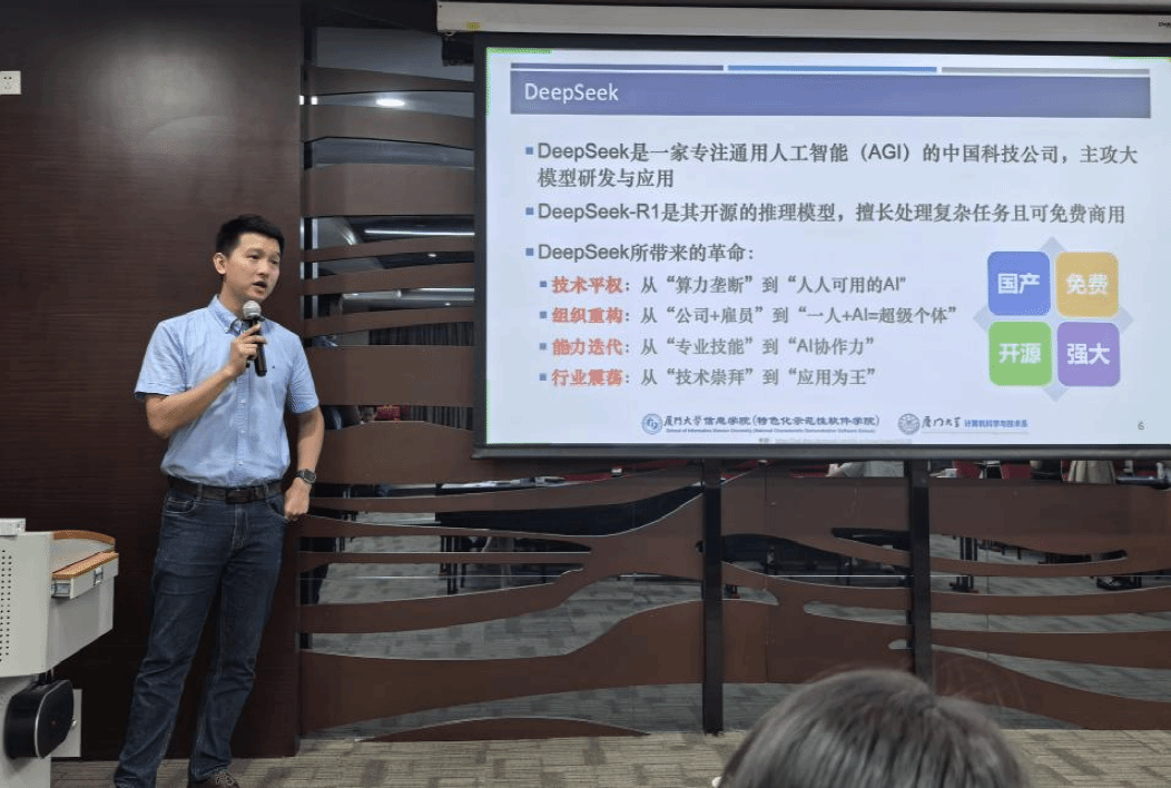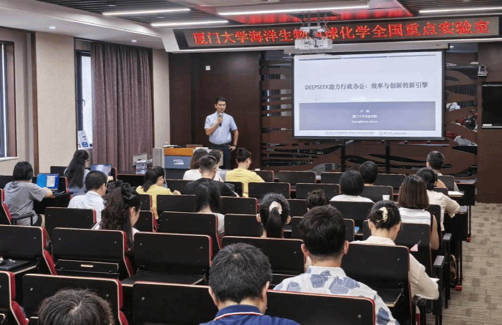 为进一步促进党建与业务的深度融合,提高行政管理人员智能技术应用能力,提升行政服务效能,6月25日,海洋与地球学院行政党支部邀请信息学院助理教授卢杨博士为行政人员作题为“DEEPSEEK助力行政办公:效率与创新的新引擎”的培训讲座,系统解析了AI技术在行政办公领域的应用前景与挑战,聚焦AI技术赋能行政管理,旨在增强行政人员综合素养,助力党员在数智化转型中发挥先锋作用,为行政工作提质增效提供了新思路。本次培训由学院党委副书记、行政党支部书记唐腾凤主持,学院党委副书记陈向柳出席。