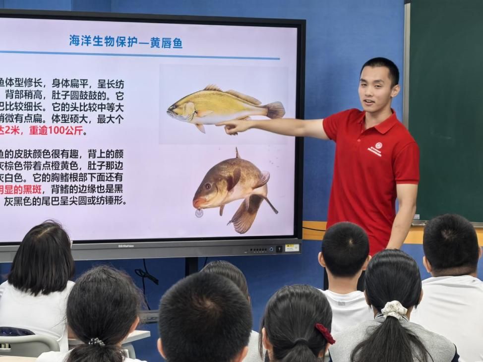 “当学生指着 PPT 追问黄唇鱼的形态细节时,我突然懂了:科普比论文更能让知识扎根。” 队员邱叶钧的分享,道出了实践队的初心。他们不仅是知识的传递者,更是海洋保护的 “播种人”—— 将学院 “大黄鱼育种芯片”“对虾闽海 1 号” 等科研成果转化为课堂案例,让中学生触摸到海洋科技的脉搏;备课中深度梳理 IUCN 红色名录、CITES 公约等国际保护框架,把专业知识转化为易懂的科普语言;面对 “铁施肥能否拯救气候” 等趣味提问时,用耐心与专业回应,锤炼科学传播能力。