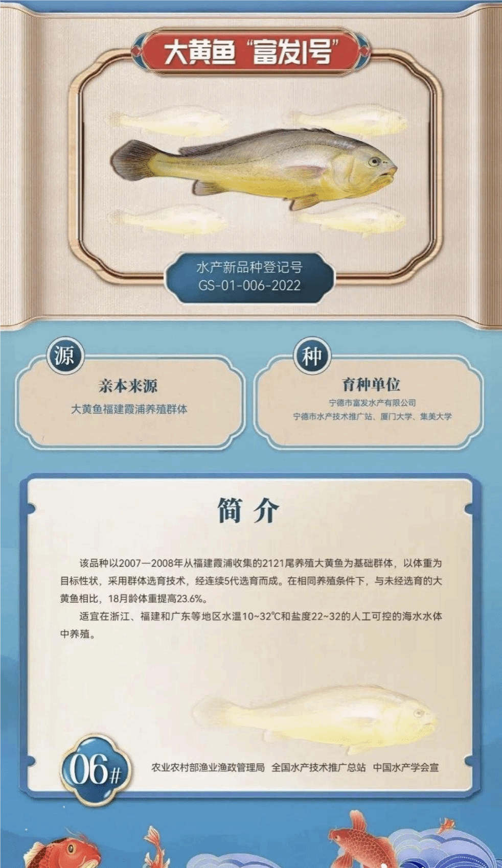 近日,农业农村部发布2025年国家农作物优良品种推广目录、农业主导品种主推技术,共组织遴选出2025年农业重大引领性技术10项、主导品种133个、主推技术143项。此次仅有12个水产新品种入选,我院徐鹏教授团队参与培育的大黄鱼“富发1号”是入选的两个海水鱼类新品种之一。