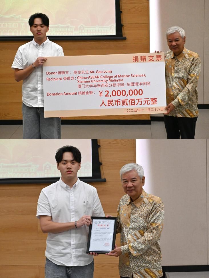 “中国—东盟海洋学院教育发展专项基金”由戴民汉院士捐资发起,他将所获厦门大学最高荣誉——2023年“南强杰出贡献奖”奖金20万元人民币全部捐出,并设立本基金,高龙先生再定向捐赠200万元注入该基金;基金专项支持厦门大学马来西亚分校中国—东盟海洋学院,旨在奖励优秀学生、鼓励科技创新,推动人才培养、学科建设及科研发展。