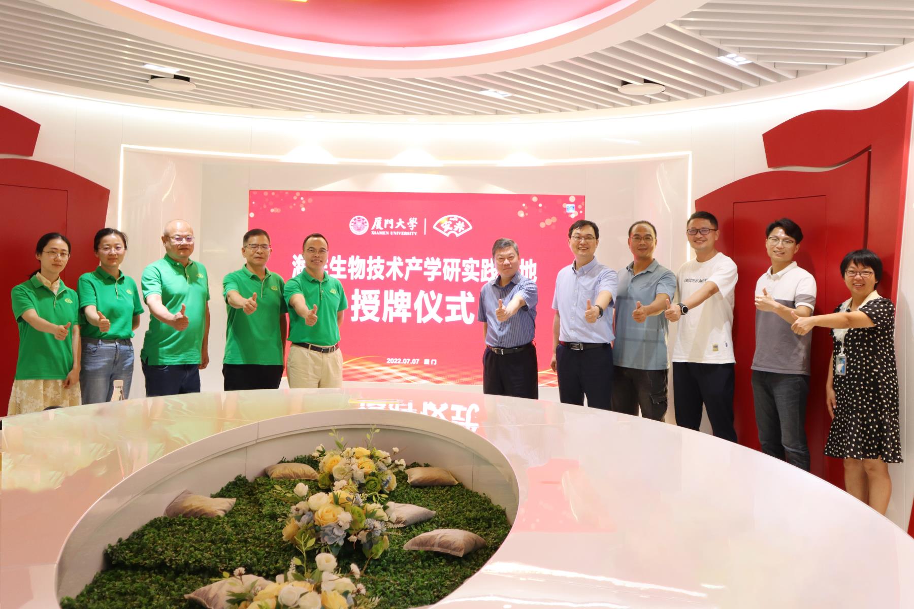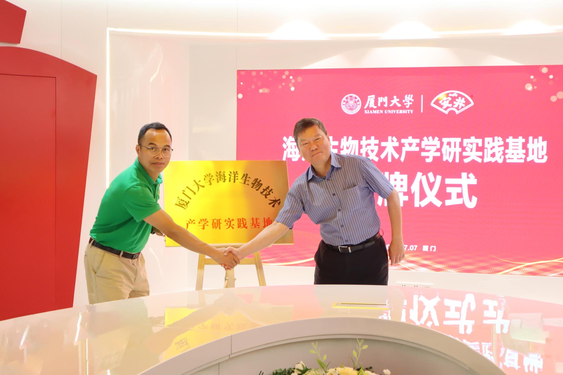 座谈会末,双方隆重举行了“厦门大学海洋生物技术产学研实践基地”揭牌仪式。
