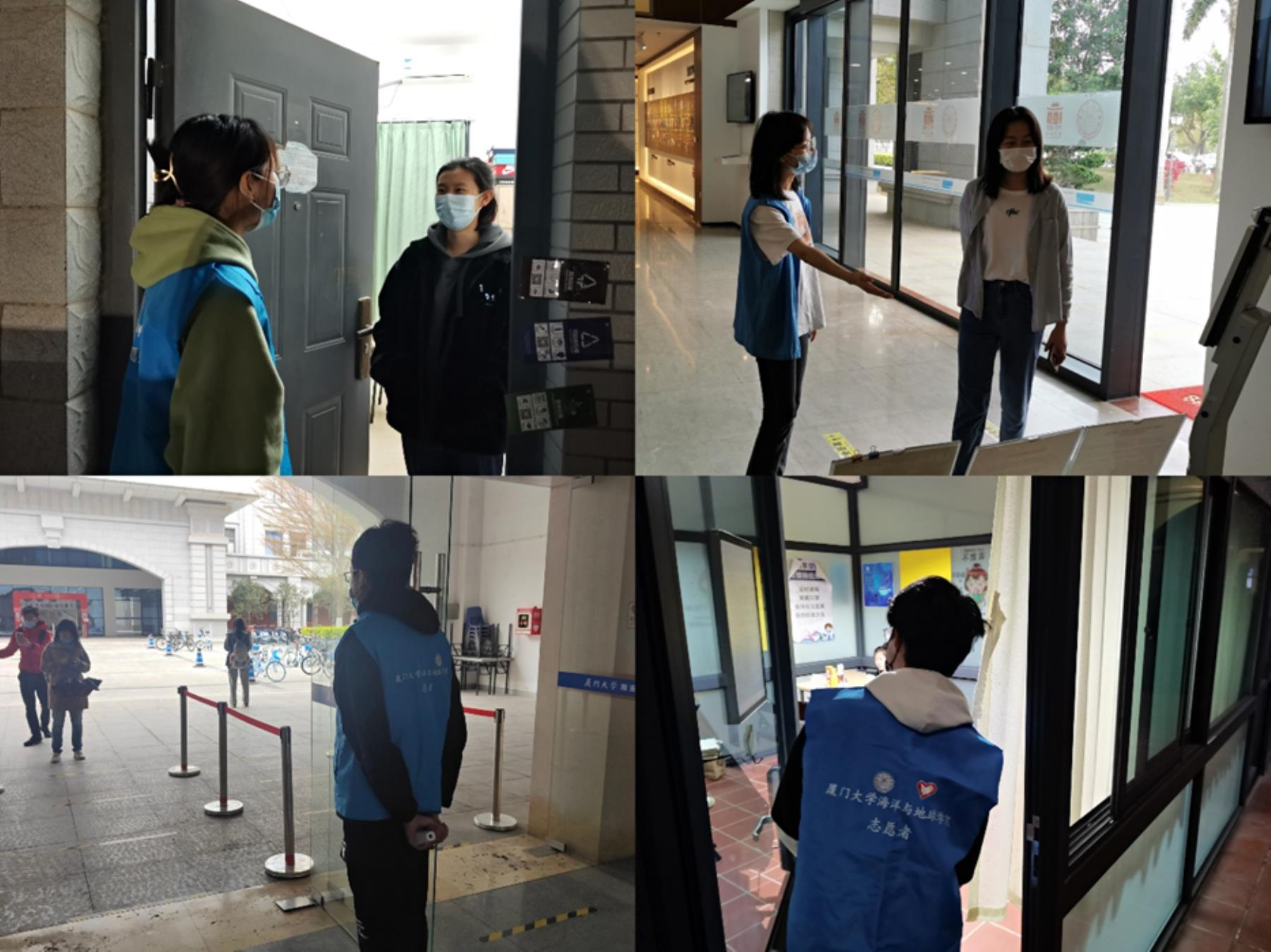 践行初心使命,勇于担当作为。校园封闭式管理后,我院第一时间发出《致海洋与地球学院各党支部和全体党员的一封信》,号召各党支部和广大党员积极行动起来,发挥示范引领作用,勇当战“疫”先锋表率。海洋师生主动担当、冲锋在前,党员先锋队、青年突击队迅速行动起来,守好学院门岗,走访学生宿舍,“面对面”为同学们宣传疫情防控政策和要求,提醒他们做好个人防护,保障学生健康安全。同时,志愿者们也积极响应学校号召,投身到校区全员核酸检测、公共场所秩序维护、垃圾分类督导等校园防疫工作中去,助力疫情防控,保障校园安全。