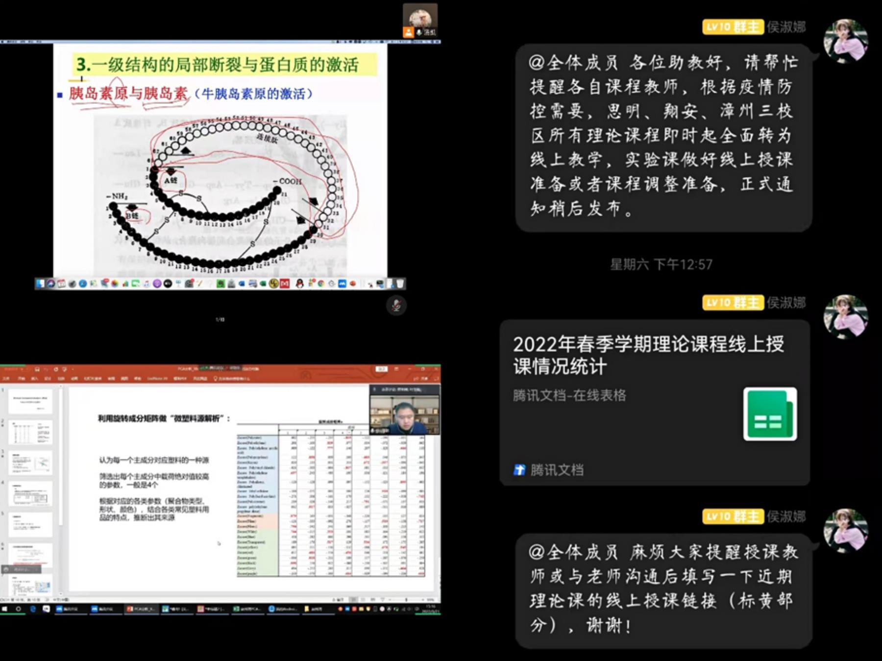 根据学校疫情防控的要求,学校全面实行线上教学,暂时关闭实验室,学院及时调整了教学方案,并针对实验课程做好预案,用好各门课程群,收集好线上授课方式,要求助教做好辅助工作,守护好疫情下的“云课堂”。学院71门本科课程、14门研究生课程均已做好线上教学安排,45位教师通过腾讯课堂、QQ直播等平台,以直播等形式开展线上授课。目前学院线上教学平稳运行,保障了全院师生的教学需求,确保了学院在疫情防控期间“停课不停学,教学不断线”, 力求线上学习与线下课堂教学同质等效。此外,本轮疫情来袭恰逢我校研究生复试工作全面展开,为保证复试工作有序推进,学院高度重视、迅速反应、妥善调整、周到保障,全力为研究生复试工作“保驾护航”。